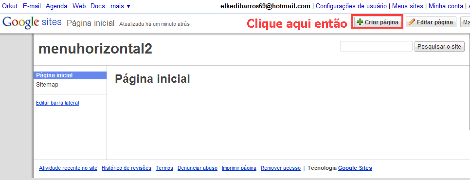 Clique no botão em cima a esquerda para criar a página